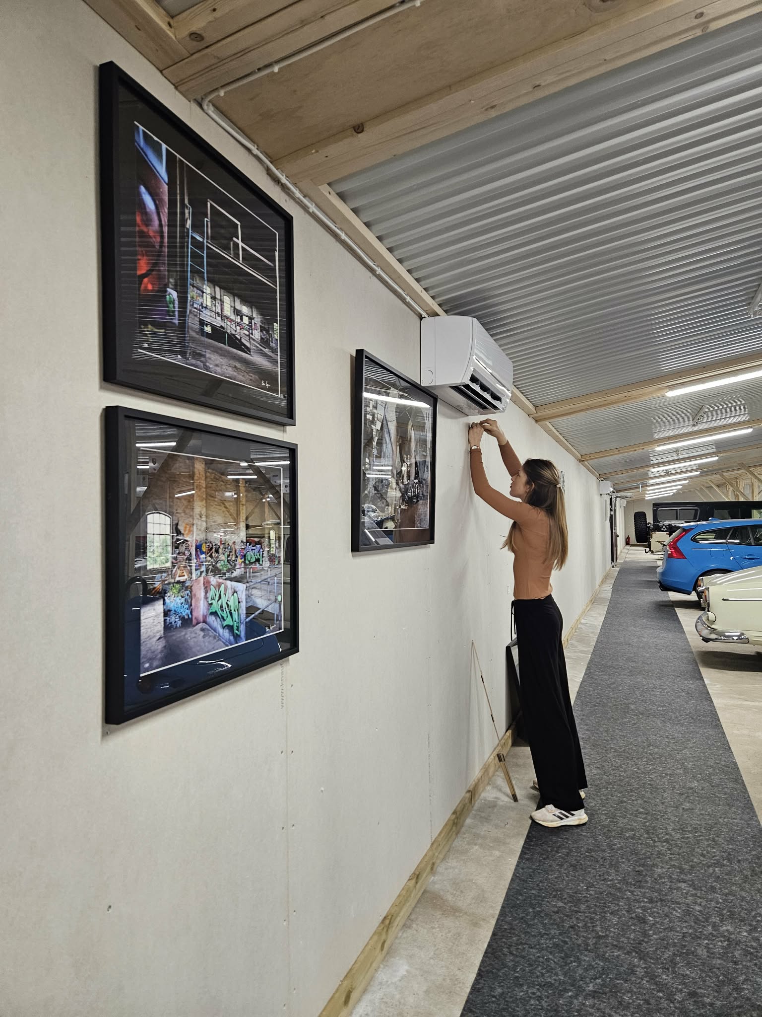 På bilden fyller vi även på med fler verk av Simone Syversson efter att flera av hennes verk har sålts.